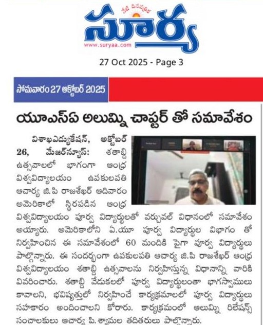 As we celebrate our University's centenary anniversary, I'm delighted to connect with our vast and vibrant alumni community. Over the past 100 years, Andhra University has nurtured generations of leaders, innovators, and changemakers. Let's cherish our heritage, celebrate our achievements, and work together to shape a brighter future.